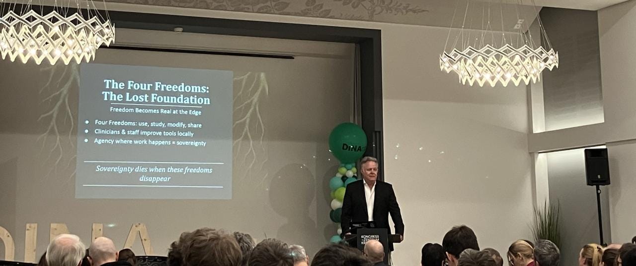 What Freedoms are we losing? What do we really mean by sovereignty? What happens when we click „I agree“ and give up control of our systems? 🫣 Henry Poole showed us the blind spots, with maturity models for service firms, small businesses even, that find a sustained purpose in digital stewardship and technical ecosystems.