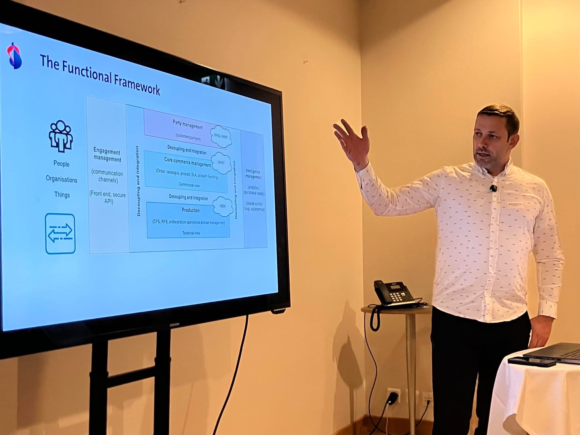 With “the Functional Framework”, like the open API registry from TM forum, companies can put consistent standards, requirements and access pathways for customers or suppliers in one place. Florian Kammermann (above) showed us in detail how this is being used by Swisscom to standardize interfaces among telcos and Service Providers. We also promoted this topic in a HACKnight challenge.