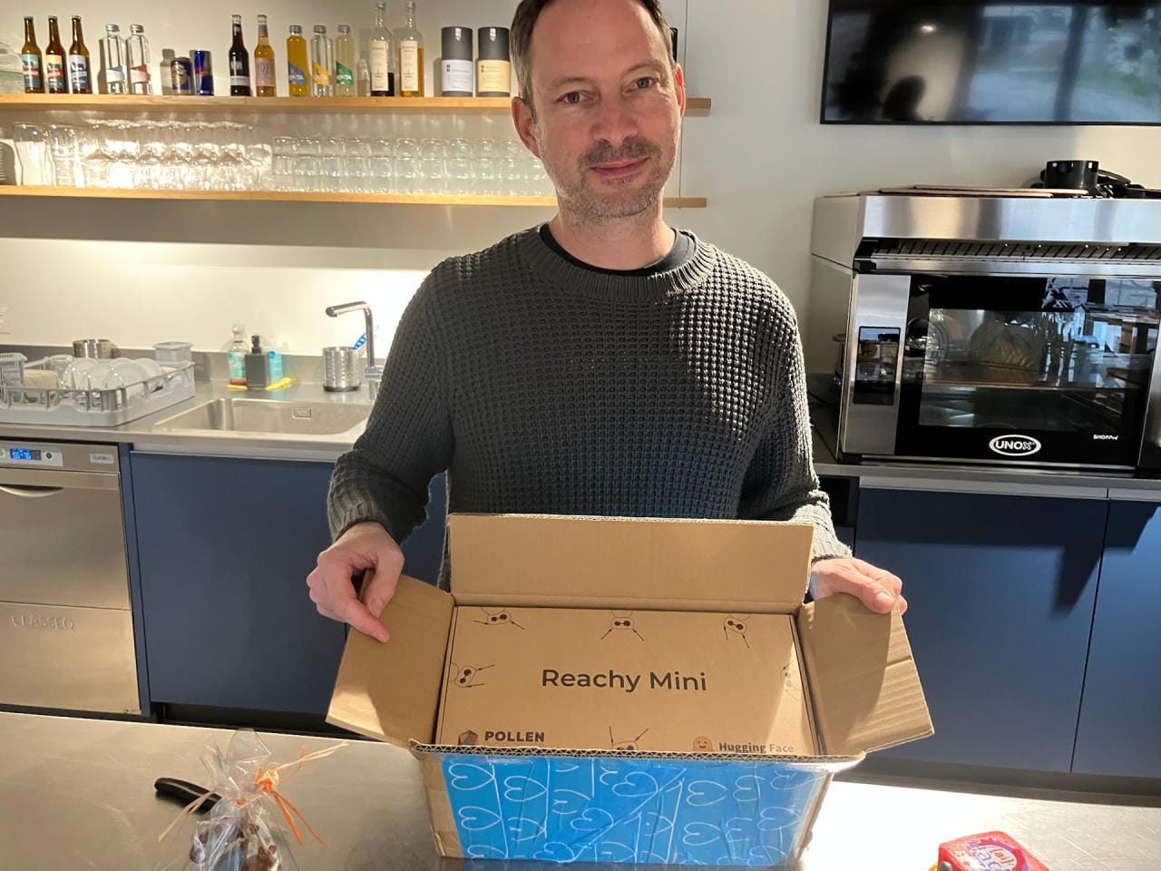 The festive season at the coworking space was marked by a long-awaited delivery: a first edition Reachy Mini (Lite) desktop robot by Pollen Robotics & Hugging Face, which we ordered five months ago in July. This post covers the unboxing and assembly of it, as well as our initial ideas of activities and applications. Meet the robot at WORKSPACE & MORE in January, or get your own at hf.co/reachy-mini - where you can find the full specifications:
