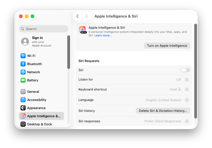 In the benchmarking business, one likes to start with a clean slate: by making sure to disable Siri and Apple Intelligence on first boot, I can help to ensure that as much memory and compute capacity as possible is leveraged by the services of my choice.