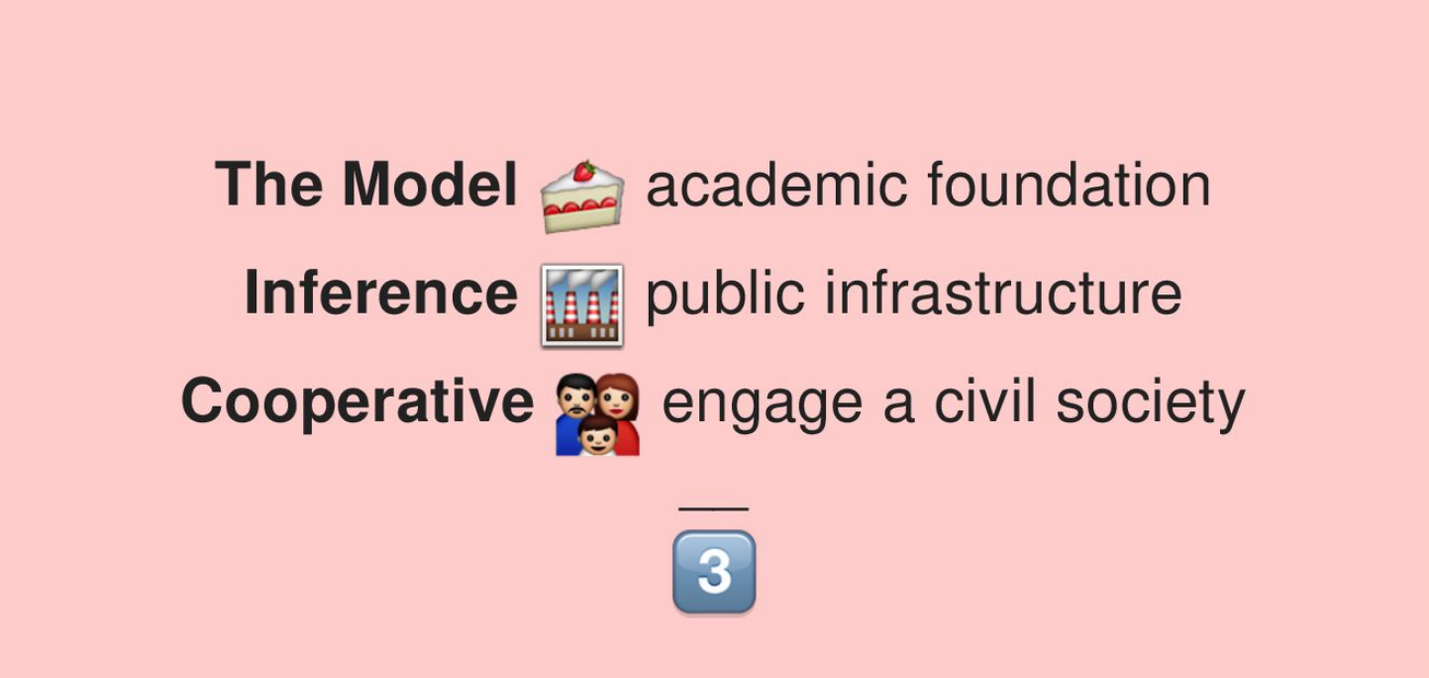 The Public AI network is a growing coalition working to bring about public AI internationally. As a supporter, I share their aim to ensure public capacity-building is part of the conversation about AI design, policy, and funding, help coordinate formal research and citizen science efforts in the ML community, support policymakers and technical teams, and help to organize the the broader movement for public AI. Is this just Open AI done right?