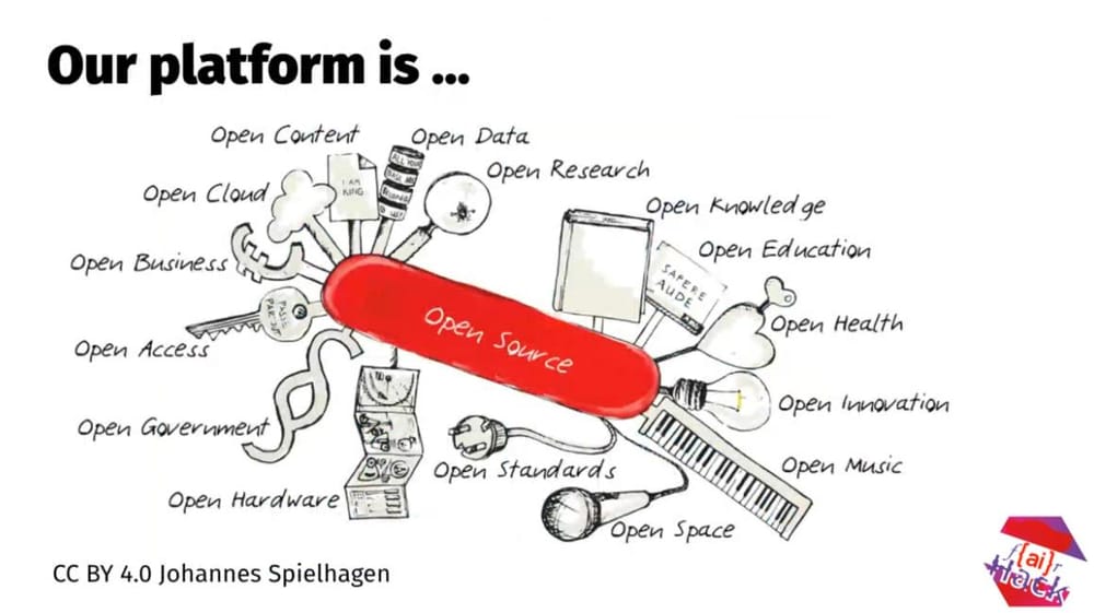 When we make a commitment to open source, we need to - like in this picture by Johannes Spielhagen - prepare to think about a wide range of factors in openness. How open can you go? With the "f{ai}R Hack" badge, I want to challenge participants of hackathons to push the envelope here. You can access all the source code of Apertus and Public AI on Hugging Face and GitHub.