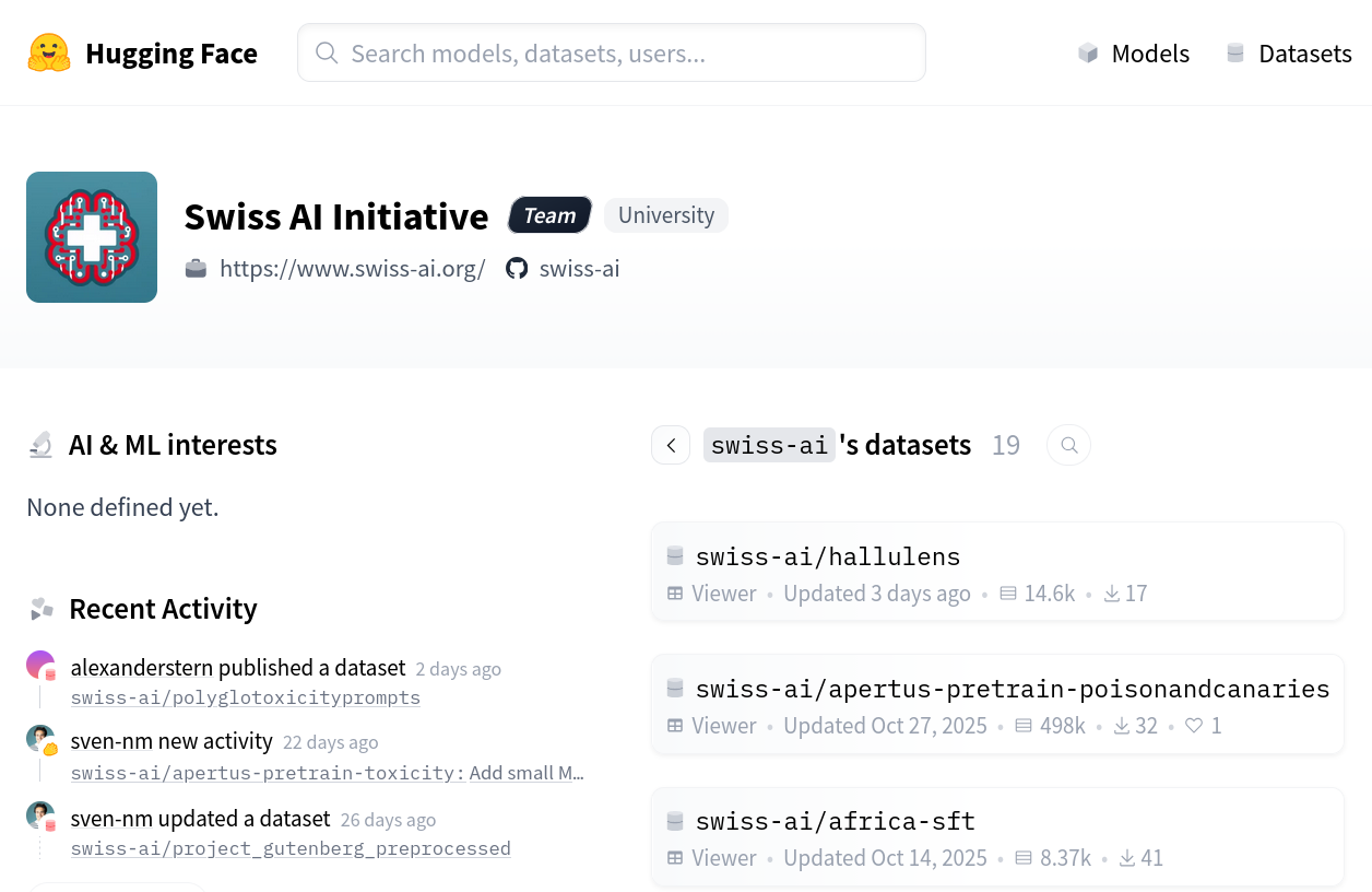 Data is the fuel of AI, but its use is often opaque. Platforms like Hugging Face place a strong emphasis on open and responsible data use, using legally compliant, open data sources and enabling all users to trace the use of data.